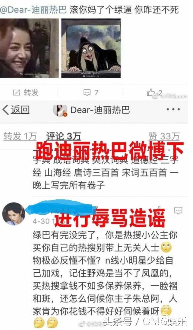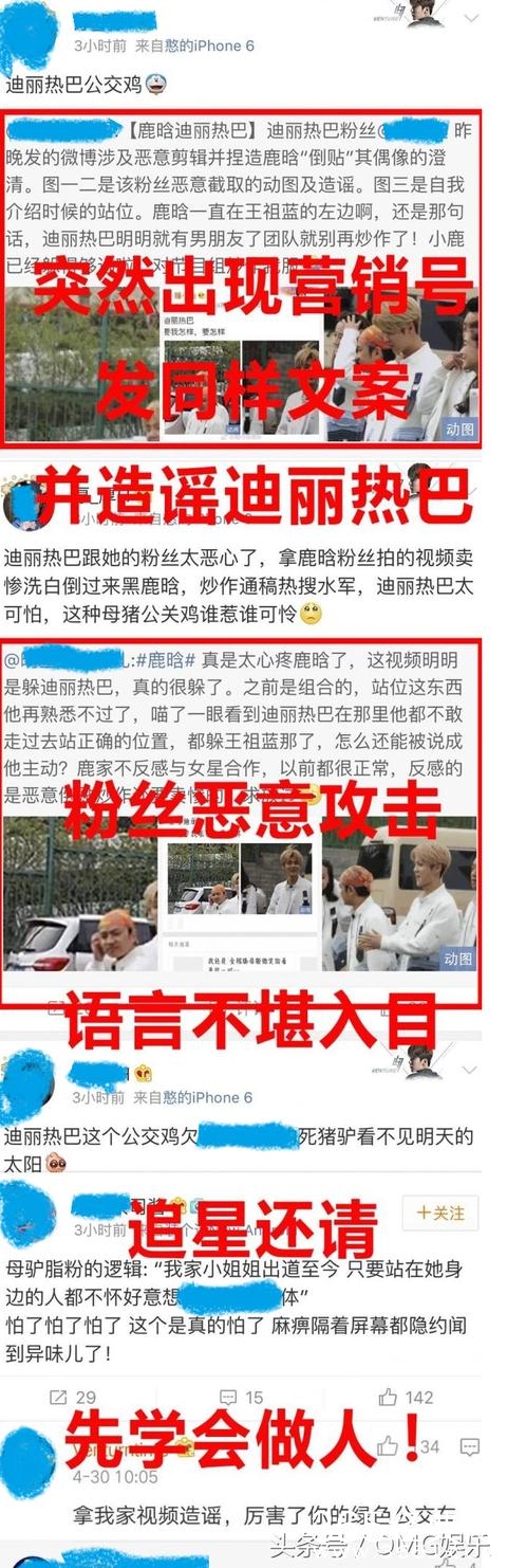 昨日,微博上先是有粉丝言语暗示迪丽热巴没作品,靠后台水军炒作出名,只能靠艳压女艺人,和男艺人炒CP(和鹿晗跑男中的CP设定)走红,被众多鹿饭点赞。