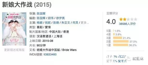 还有一部,是和杨颖主演的电影《新娘大作战》,最终票房1.73亿。