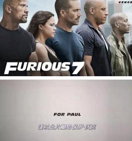 2013年11月30日,保罗·沃克在洛杉矶一起车祸中身亡,年仅40岁。2015年,保罗的遗作《速度与激情7》在中国大陆上映,内地票房累积达24亿元。影片最后出现“FOR PAUL”字幕以纪念保罗,《see you again》音乐响起的时候,影迷内心满怀遗憾和感动。