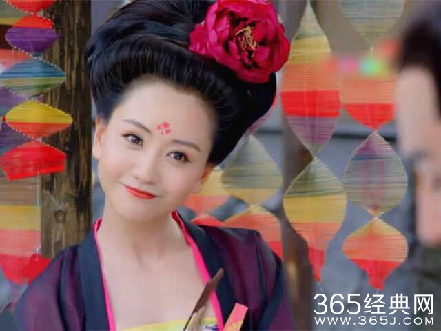 浓艳的妆容,发髻再戴一朵大红的牡丹,活脱脱的老鸦形象,俗不可耐