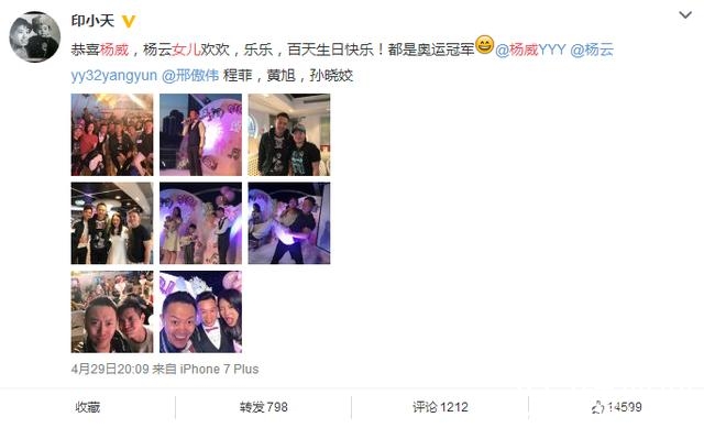 印小天和邢傲伟也都去了百日宴的现场,送上祝福。看的出来都很欢乐呢。