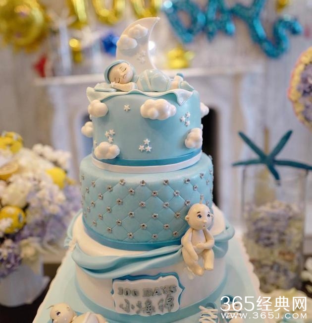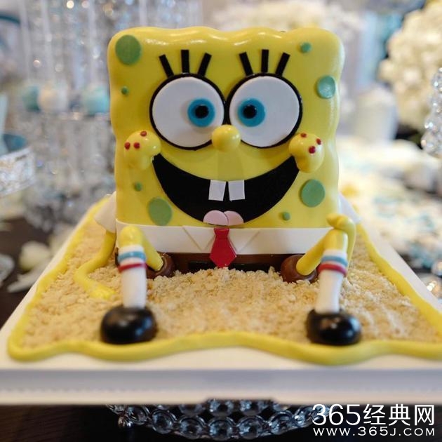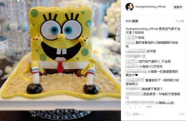 可爱的海绵宝宝,还有少女心的蓝色蛋糕,能看的出黄晓明和baby对于宝宝小海绵的喜爱~