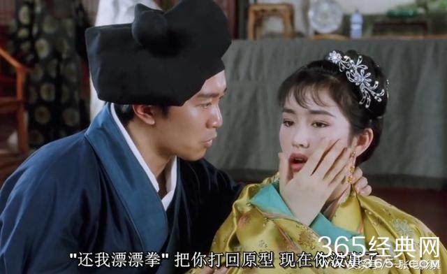 接下去,周星驰施展了还我漂漂拳,把秋香打回了原型,这个时候巩俐又出来了。