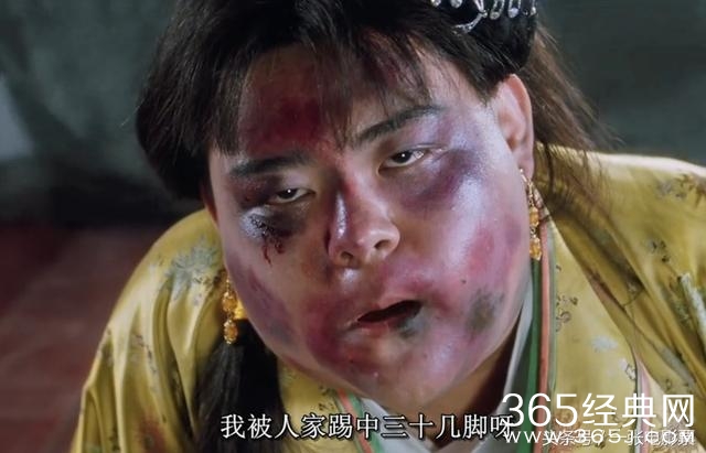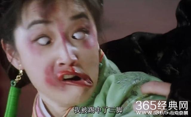 当镜头转过来时,我们看到这个被打丑之后的秋香换成了别人。当时需要巩俐化一个青一块紫一块的猪头妆,但巩俐一听眼睛都大了,坚决不肯化这个丑妆,所以只有找人替代她。