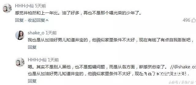 网友也说井柏然油了,不再是那个唱光荣的少年了。
