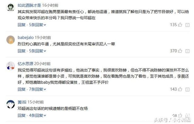而跑男团里被吐槽过演技的不再少数,可能就陈赫算是被吐槽最少的了,而像baby和鹿晗,就是被吐槽演技最多的两个人了。