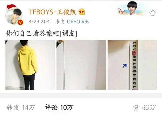 小编仔细看了看量尺,小凯的净身高是177.5cm。虽然没有达到心中理想的身高,但是这个男孩身上的这股子实诚劲可是很值得我们赞赏的。在娱乐圈中,艺人的真实身高和体重都是经常会被大家所关注,也有很多艺人隐瞒自己的身高,更鲜少有艺人会亲量身高并公之于众。因此,王俊凯的这一举动不仅回应了网友的质疑,也让大家看到了一个不虚伪、真诚的正能量少年。
