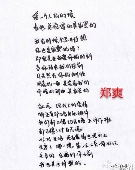 郑爽抄写的小情书,字体单个拎出来看有几个可能不是hin好看,但放在一起就莫名顺眼了许多,是不是~