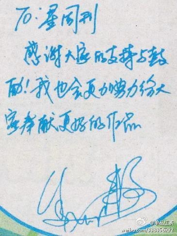 唐嫣的字体超洒脱有木有!是那种简练但特好看的字迹