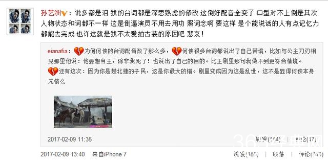 之前孙艺洲就在微博上大吐苦水。他为了贴合剧中人物,现场用心修改了不少台词细节,但是最后却让配音全变了,孙艺洲表示:“人物状态和词都不一样,这是倒逼演员不用去用功……”