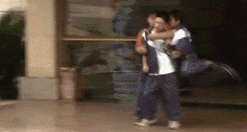 然后出现了一个胖男生拿着刀劫持一个瘦弱男生的画面。