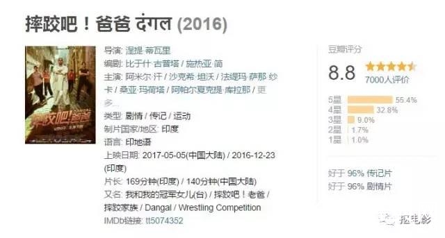 这部《摔跤吧!爸爸》,豆瓣 8.8