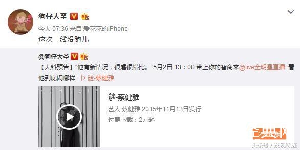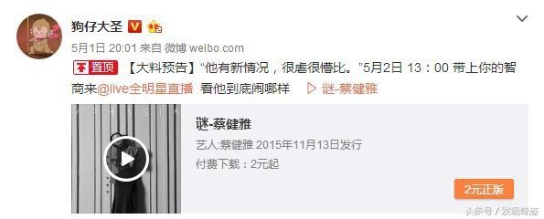 有人因为爆料所配的蔡健雅的歌曲《谜》而怀疑会不会是蔡健雅?其实应该不是这样的,“他有新情况”,显然这是一位男星!