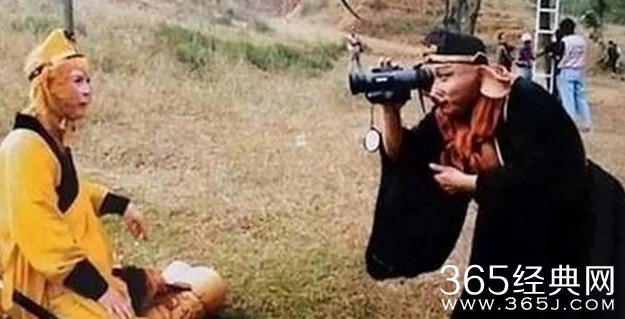 休息期间,猪八戒拿着摄像镜头玩耍:猴哥,来嘛看这里,老猪我为你拍个照,看镜头撒,给点面子好不好,摆个好点的POS咯,不要那样僵硬撒!