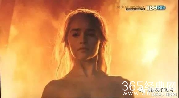 而到了第六季第四集,龙母被俘后被首领辱骂推倒火盆,敌人在火中丧生,而龙母浴火而出,全裸上阵,艾米莉亚·克拉克完全没有使用裸替。