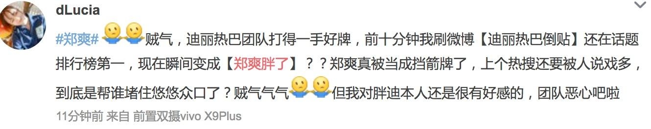 不过,也就一首歌的时间,迪丽热巴倒贴的热搜便被撤下来,同时将#郑爽胖了#推向热搜榜第一位。不得不佩服迪丽热巴背后的公关团队,也是real厉害,强势撤下热搜,郑爽莫名躺枪!