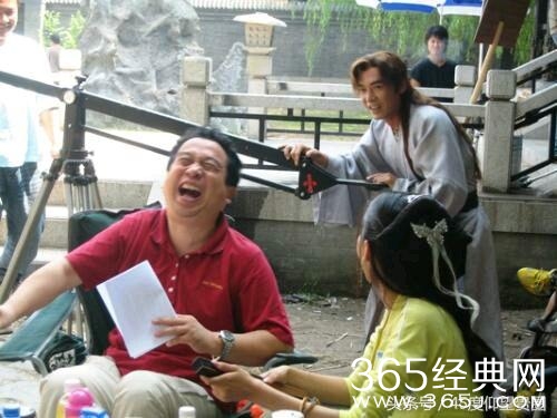 9.片场的氛围还是很好的,司法天神在揪天蓬元帅的小辫子。