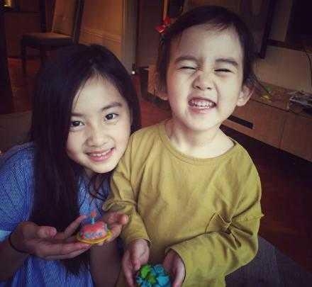 而孙莉再忙也没忘了晒多多和多妹,时时关注她们的成长。