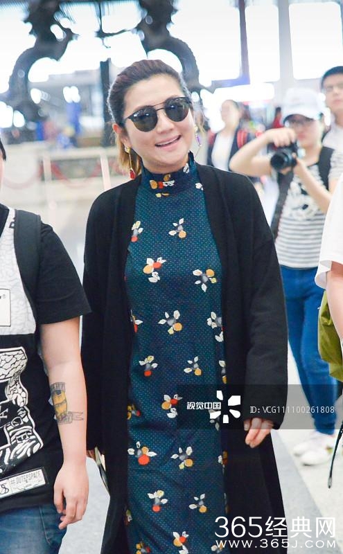 碎花墨绿旗袍搭配黑衫,确定适合才36岁的Selina?