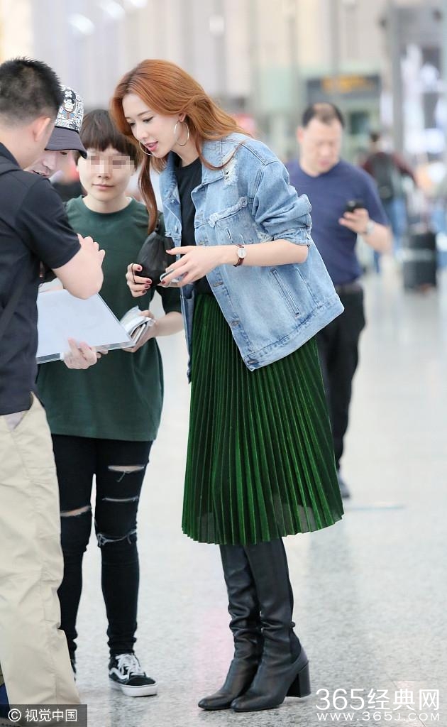 竟然不露大腿救一救,竟然还穿了一双单看也很不合时宜的过膝黑长靴!