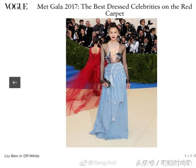 刘雯还可爱的比了一个剪刀手,真是好可爱呀~要说大表姐一出手,就知道有没有,刘雯这身造型刚刚被Vogue US评为当晚的最佳造型之一。