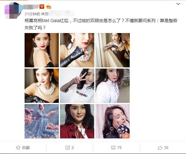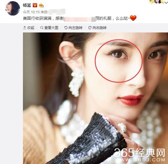 大幂幂的五官也没能幸免,在她晒出的美照中,有人发现杨幂的眼角出现“异物”,这是大眼妹特有的吗?还是开了眼角;甚至还有人质疑大幂幂的双眼皮,看上去跟之前很不一样了,是下垂的原因吗?倒时差没有休息好?