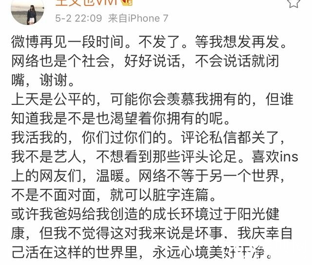 但是随后她就把微博删除了,另外一则微博,说明了原因