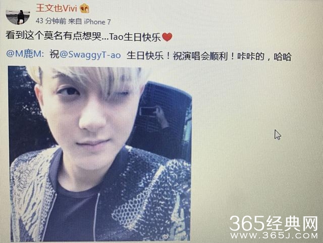 今天鹿晗发微博祝黄子韬生日快乐,让所有人都很惊讶,王文也也表达出她激动的心情
