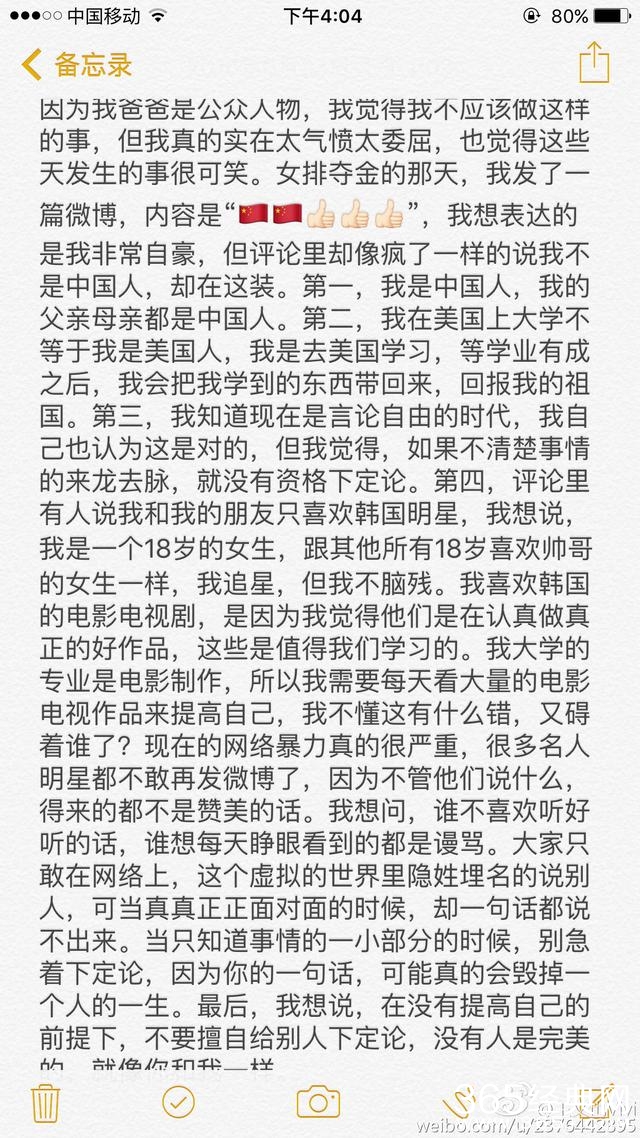 其实,正如她说,她也是一个女孩,一个年龄不大的女孩,并不能因为身份问题,就不能有自己喜欢的明星,大众不能道德绑架她的自由,不管怎么样,都希望你可以坚持做自己喜欢的事情