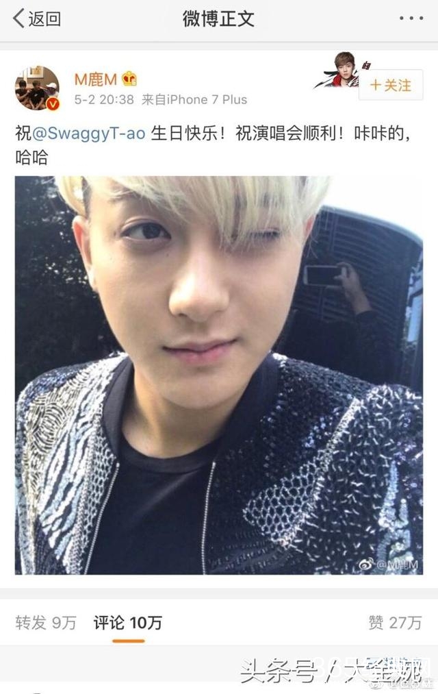今天是黄子韬的生日,鹿晗在微博上祝福黄子韬生日快乐,黄子韬秒回“我的鹿哥啊,我爱你”!这也是俩人回国后首次微博互动