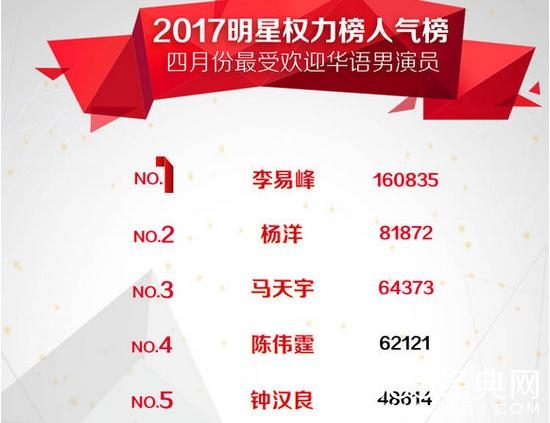 男演员榜方面,李易峰以领先第二名近一倍的分数,遥遥排名第一,亮点是钟汉良,中生代演员之光,在一堆小鲜肉下,挤进前五,实属不易。看来他的《繁星四月》在播,也是有一定加分的。另两位中生代王凯、胡歌在目前没有戏的情况下,排名第七、第八!!不过,大热的《人民的名义》男主角怎么没有在榜单上呢?不科学啊!