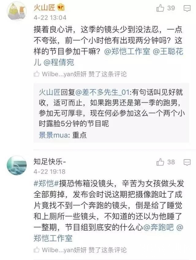 郑恺的粉丝就不开心了——“镜头这么少,这节目参加还有什么意思”。