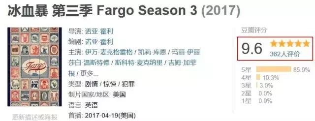 脱胎于科恩兄弟的同名黑色电影,由于原作太经典,美剧《冰血暴》一度让人捏把汗。