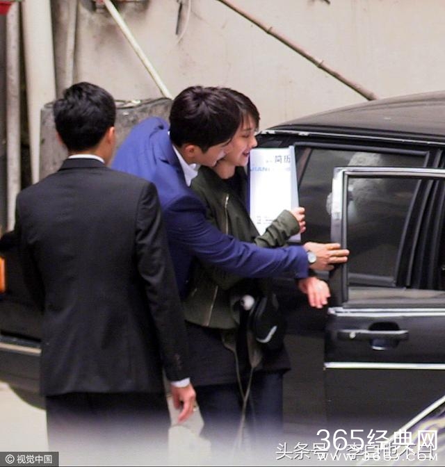 罗晋贴心的在身后为爽妹子开车门