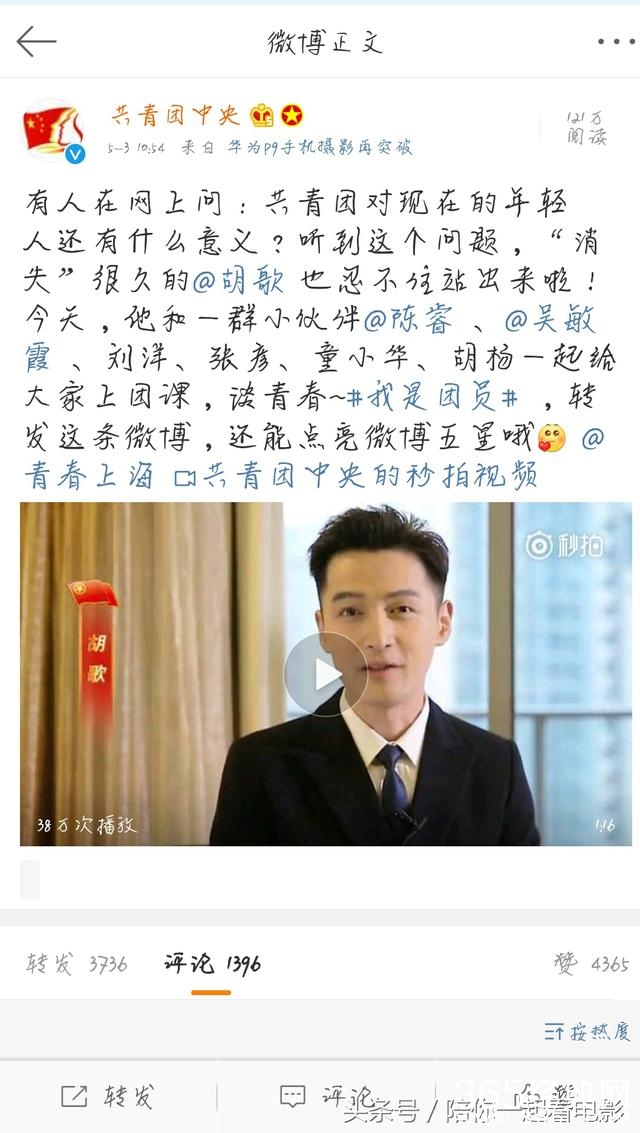 胡歌好久没出现,共青团大大,竟然直接把胡歌炸出来谈现在年轻人,也是厉害。