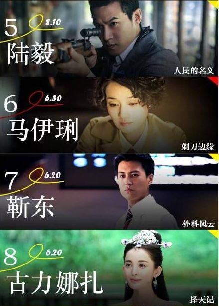 近日,2017年4月影响力月榜公布了相关数据,在电视剧艺人商业价值排行榜上,达康书记吴刚妥妥的高居榜首,而祁厅长许亚军次之,高育良书记张志坚排第三。而前十名当中,陆毅和胡静也纷纷入榜,这样统计下来,《人民的名义》演员就占到了半壁江山。