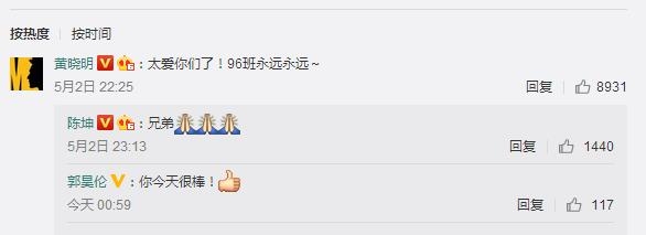 不久后黄晓明转发陈坤微博并并互粉,留言:“太爱你们了!”破之前不和传闻,让人想起情真意切的同学友谊,相当感人!