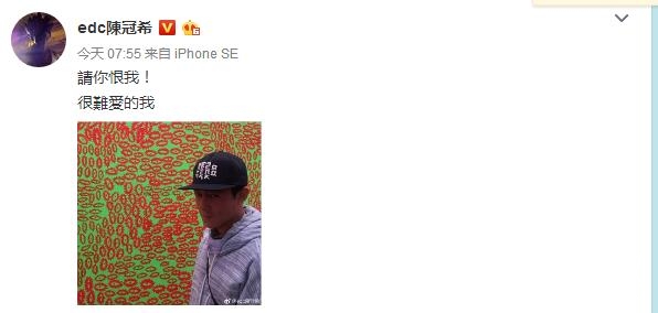 而今天早上陈冠希就更新了微博,不清楚是在回应什么。