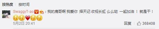 就在粉丝以为鹿晗被盗号的时候,黄子韬就在评论下面回复了“我爱你”和“么么哒”,看起来关系很好的样子。