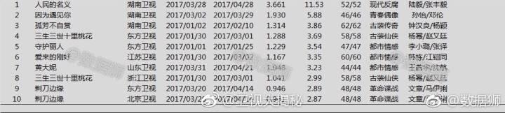 其中陆毅、张丰毅的《人 民 的 名 义》以3.661的高收视强势领衔,锁定年度剧王;