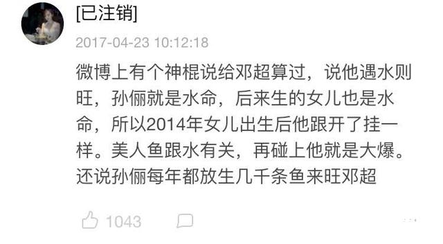 还有个神棍给他算过,说他娶了个旺夫的好老婆,孙俪是水命,而邓超则是遇水则旺。