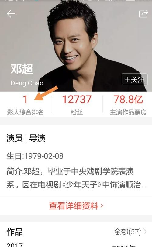 有人统计过近几年邓超主演电影的票房,累计接近80亿!而且他的累计票房是国内演员里最高的,第二名的两倍多 !