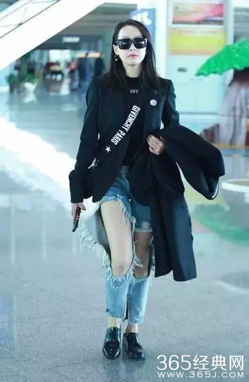宋茜这张机场照,再次证明了,这种漏洞的阔腿牛仔裤真的小粗腿的救星。