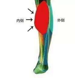 那么怎样确诊你就是肌肉型粗腿呢?猪猪教你一个简单粗暴的办法:把腿紧紧的绷住,可以看到小腿后侧一块凸出的肌肉。就是下图这块肌肉。