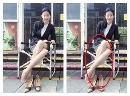 坐下来的刘亦菲,腿部脂肪就更加明显了,看来白也不是万能的遮丑啊。