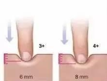 水肿型粗腿在表面上和脂肪型粗腿其实很像,一般人也难以看出他们的区别。但是鉴定是否是水肿型粗腿最好的办法就是:按按上面的肉,看她究竟可以软到什么程度。若是到了下图的深度,就是水肿型粗腿了。