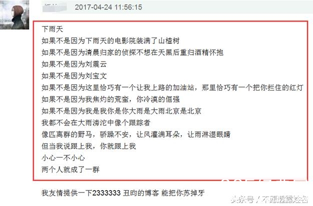 从丑昀老博客中透露的信息是:俩人相逢北京大雨中,丑昀追了上去,“跟上我”,唐艺昕就乖乖的跟了上去……就介个意思!