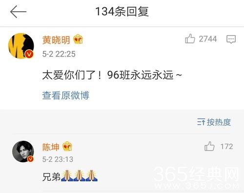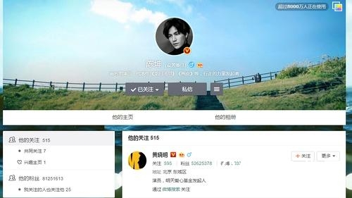 要知道之前这二位一直是王不见王的状态,就连微博关注也是黄晓明单方面关注陈坤的