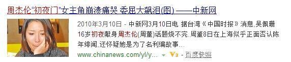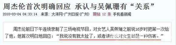 其实,这起与吴佩珊与周杰伦有关的“初夜门”炒作其实有据可查,此前,周杰伦曾因侯佩岑一句“处女嫁人”身陷“处女门”