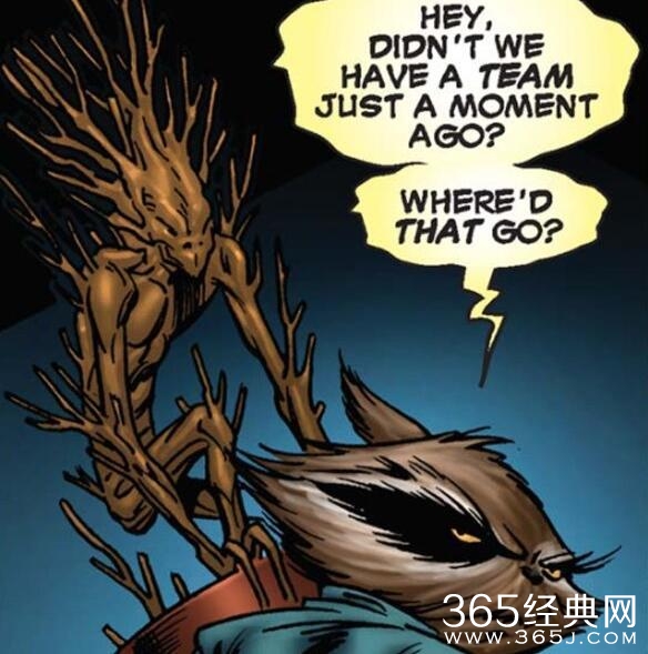 与火箭浣熊一样,格鲁特在《银河护卫队2》中也同样被“萌化”了,格鲁特在漫画中的形象就没有这么可爱: